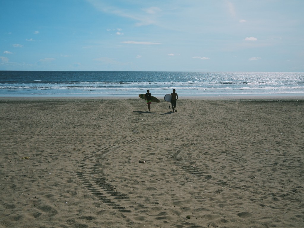 Outre le fait que nos bagages ne soient pas arrivés à bon (aéro) port, mon cousin et sa femme avaient décidé de rester quelques jours à Legian histoire de s’initier au surf (ils n’en avaient jamais fait de leur vie). La région de Kuta / Legian se prête parfaitement à l’initiation au surf: plusieurs kilomètres de beach break qui ressemblent à ce que l’on peut trouver chez nous dans les Landes, en un peu plus bétonné. Quand c’est la première fois et qu’on prend ses premières mousses, on vient un peu quand on veut, mais sinon, ça marche mieux quand la marée est montante (mid to high), contrairement à certains spots en France qui ne marchent qu’à marée basse.